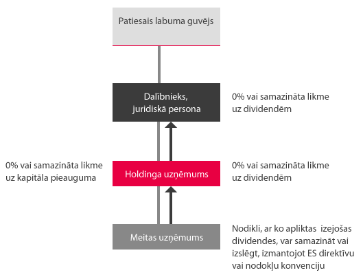 Lai samazinātu dividendēm uzlikto nodokli vai izvairītos no tā, piemērojot konvencijas par nodokļu dubultās uzlikšanas novēršanu vai ES mātesuzņēmumu-meitasuzņēmumu direktīvu, holdinga uzņēmumam